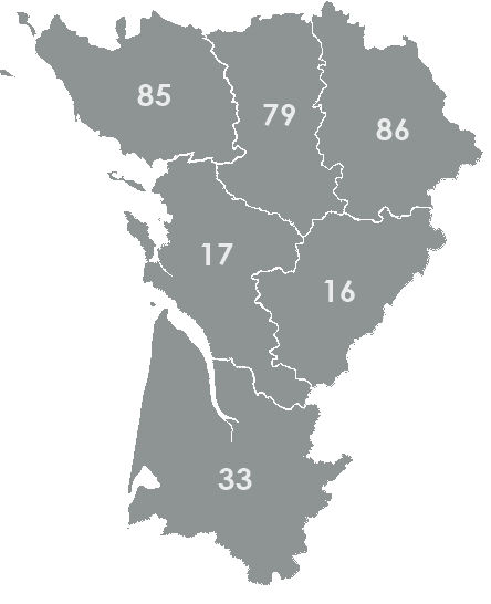 Nous intervenons sur les départements de la Charente-Maritime, la Vendée, les Deux-Sèvres, la Vienne, la Charente et la Gironde.